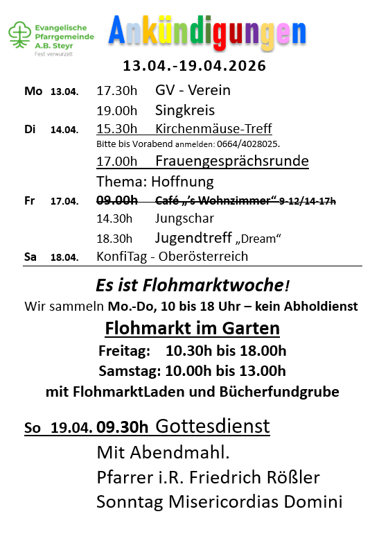 Ankündigungen 13.04.-19.04.2026