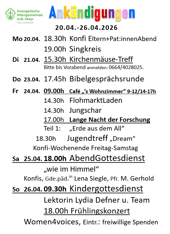 Ankündigungen 14.04.-21.04.2024